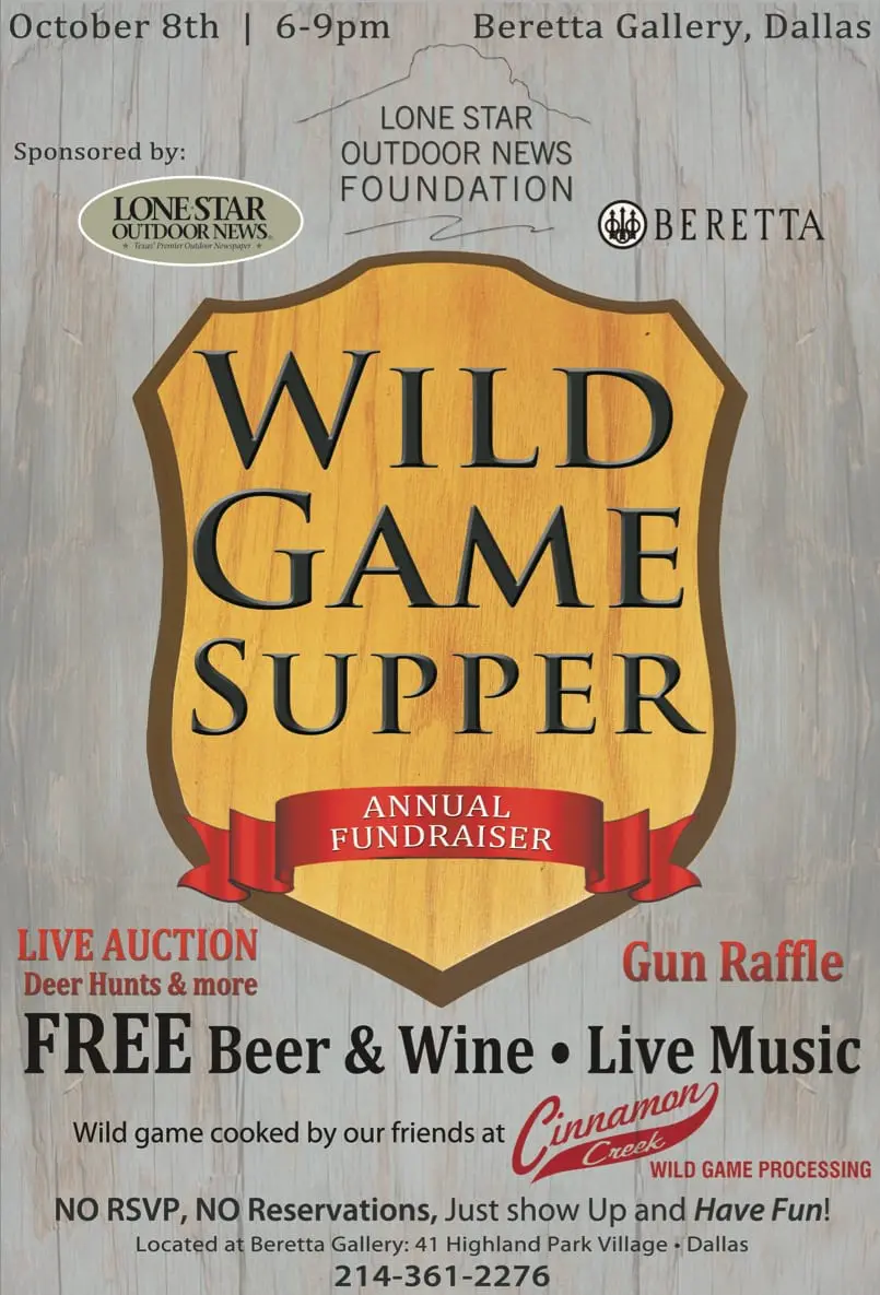 The 4th Annual Lone Star Outdoor News Wild Game Supper is TONIGHT, Oct. 8, and this year’s auction items are the best yet.
