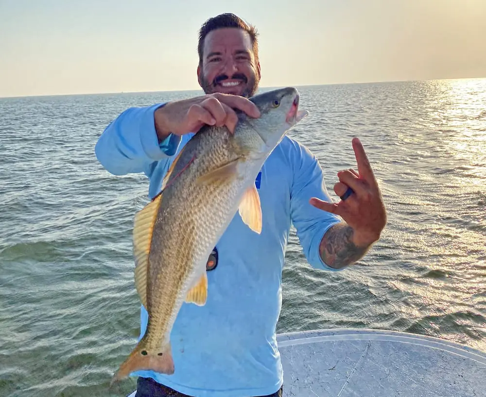 “Cade Peterek and I went drift fishing the King Ranch shoreline on 7/14/2020. We loaded up on live shrimp for the early morning haul in my boat. I was not sure how the bite was going to be but we fished anyways. The bite produced five keeper trout but we wanted redfish. So we continued getting closer to the shoreline looking to pop a redfish. Well I caught one. As it came closer to the boat I saw a tag. I yelled get the freaking net. Once the fish was in the boat I was in disbelief. I immediately felt the presence of God smiling down.”