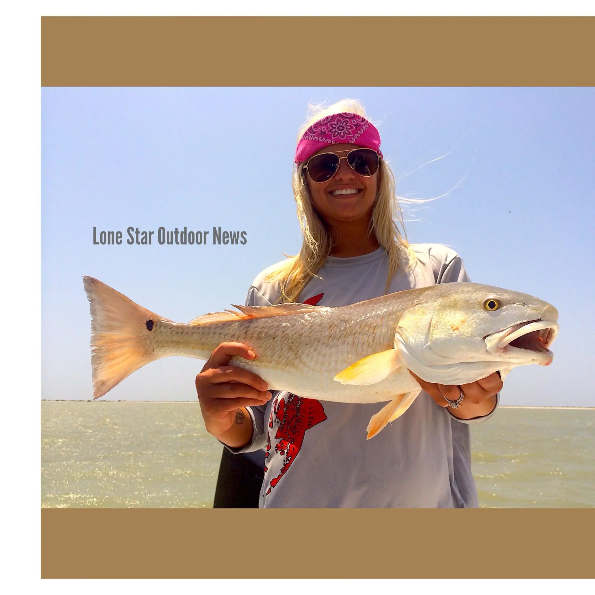 Brittney Domashck of Rockport Texas holds a 24 inch red drum she caught while fishing for team “Mean Gills” Saturday afternoon. The Babes On The Bay event is on of the largest single day tournaments on the coast. Read the story by Craig Nyhus in the next issue of Lone Star Outdoor News out this Friday.