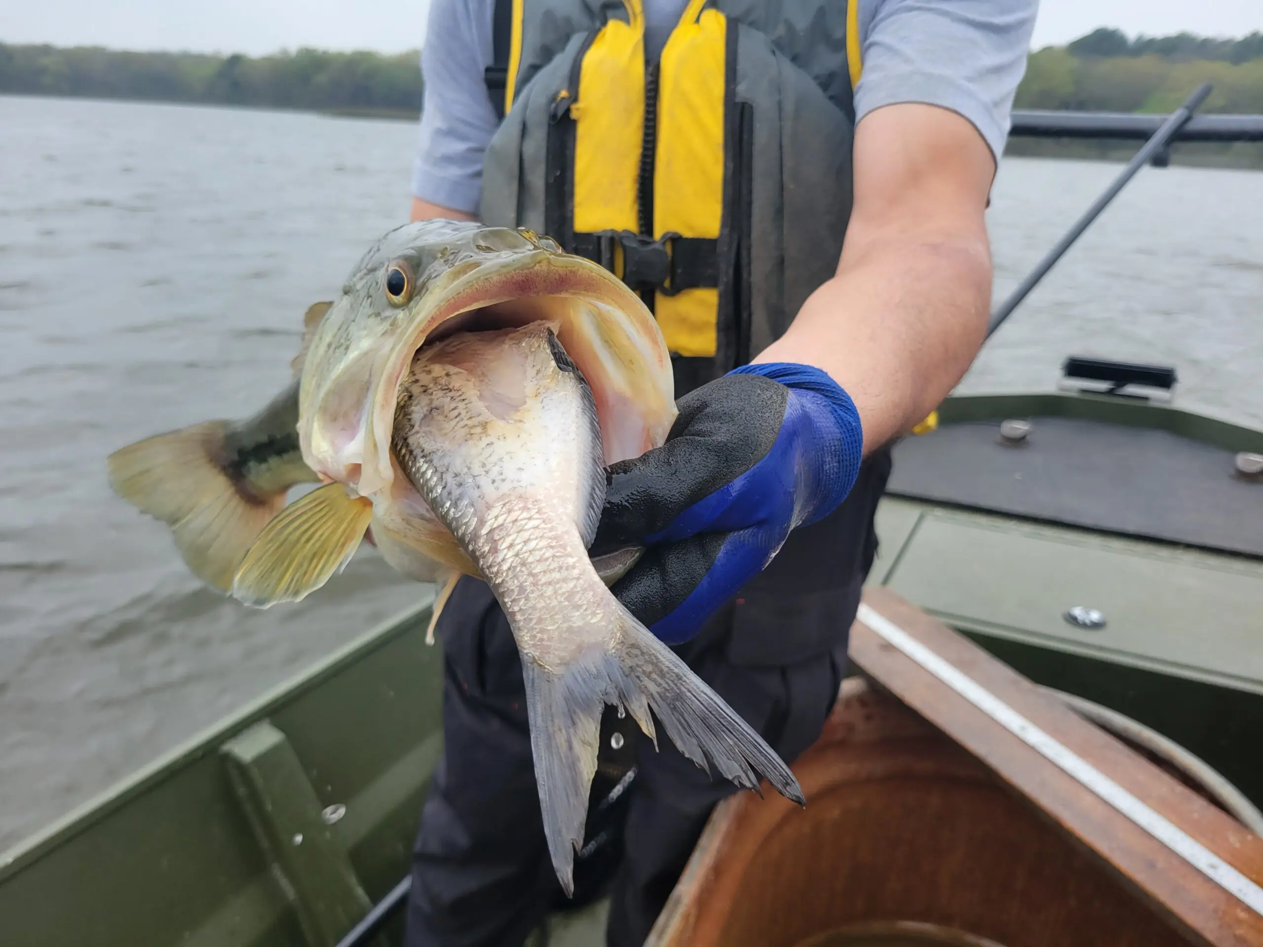 The small reservoir, at 355 acres with a maximum depth of 20 feet, can’t handle big crowds, but the bass are impressive. One largemouth had a giant gizzard shad coming out of its mouth when pulled from the water.