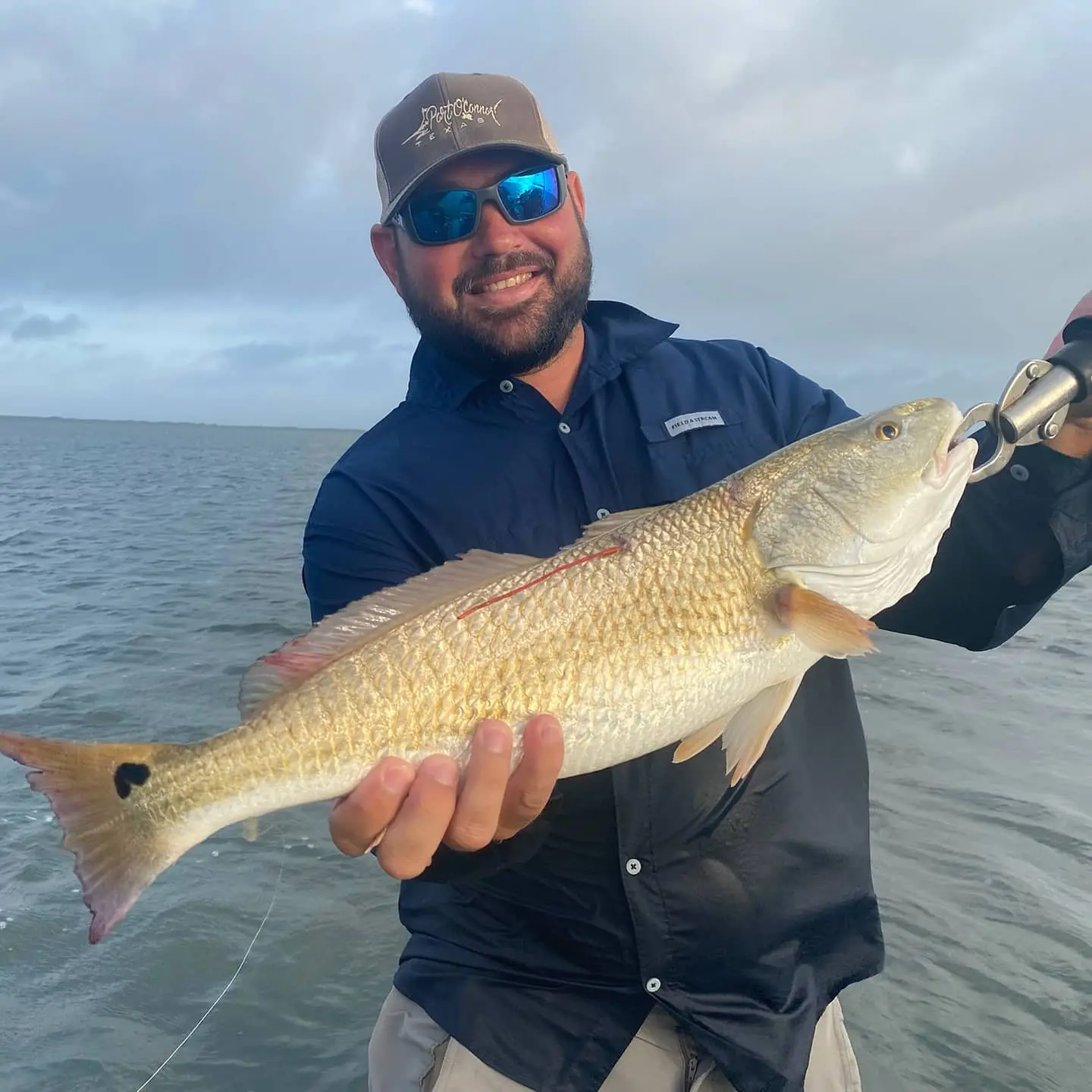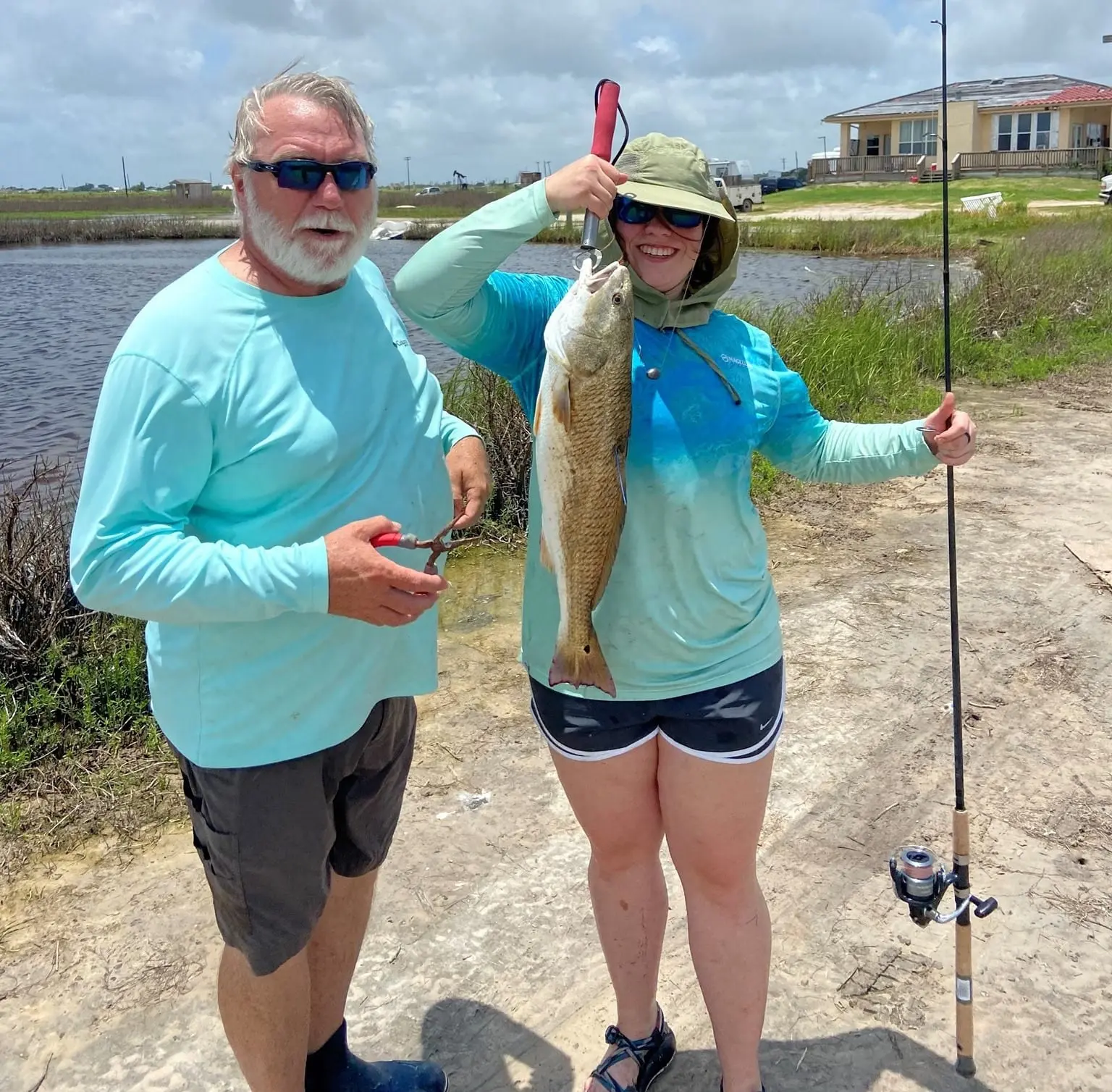 Stacy: “I’ve been fishing with my dad in Rockport my whole life. I was in town for the day and he took me to this spot that he swears by even though the heavy rains seemed to slow the bite the last few days. He’s been fishing the CCA Star Tournament for years and has both seen and heard of people not registering then catching a fish and being unable to enter it so he insisted my sister, girlfriend, and I all register before going out. We hadn’t caught anything of keeping size all morning, it was hot, and we were supposed to be leaving soon, so I took a single shrimp to a corner that I had a good feeling about and threw my line in. Within two casts, I had a bite and knew it was a big Red immediately. I was excited enough to just have caught my first keeper of the day, but when I landed the fish, I saw the blue tag and started yelling “It has a tag! I got a tag!” We always make the most of even short trips out together, but this takes that to another level. So grateful my dad took me out and we got to share this experience!”