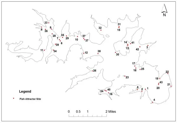 An updated map and coordinates of the attractor locations will be posted on the TPWD web site:www.tpwd.state.tx.us/fishboat/fish/recreational/lakes/canyon/.