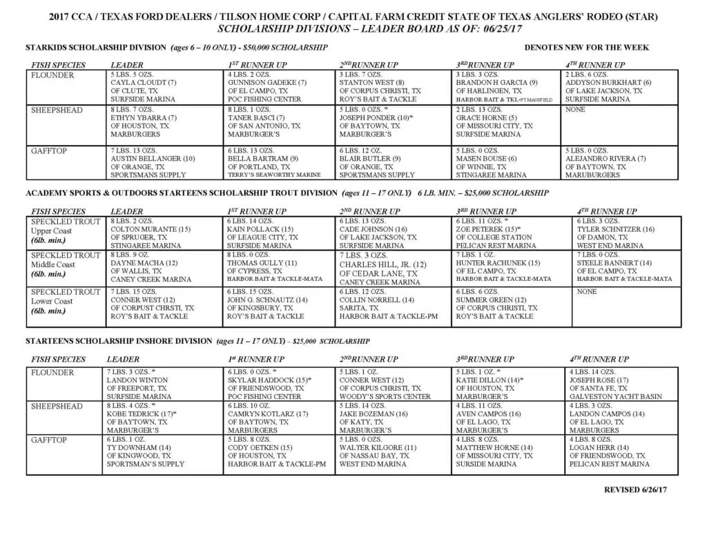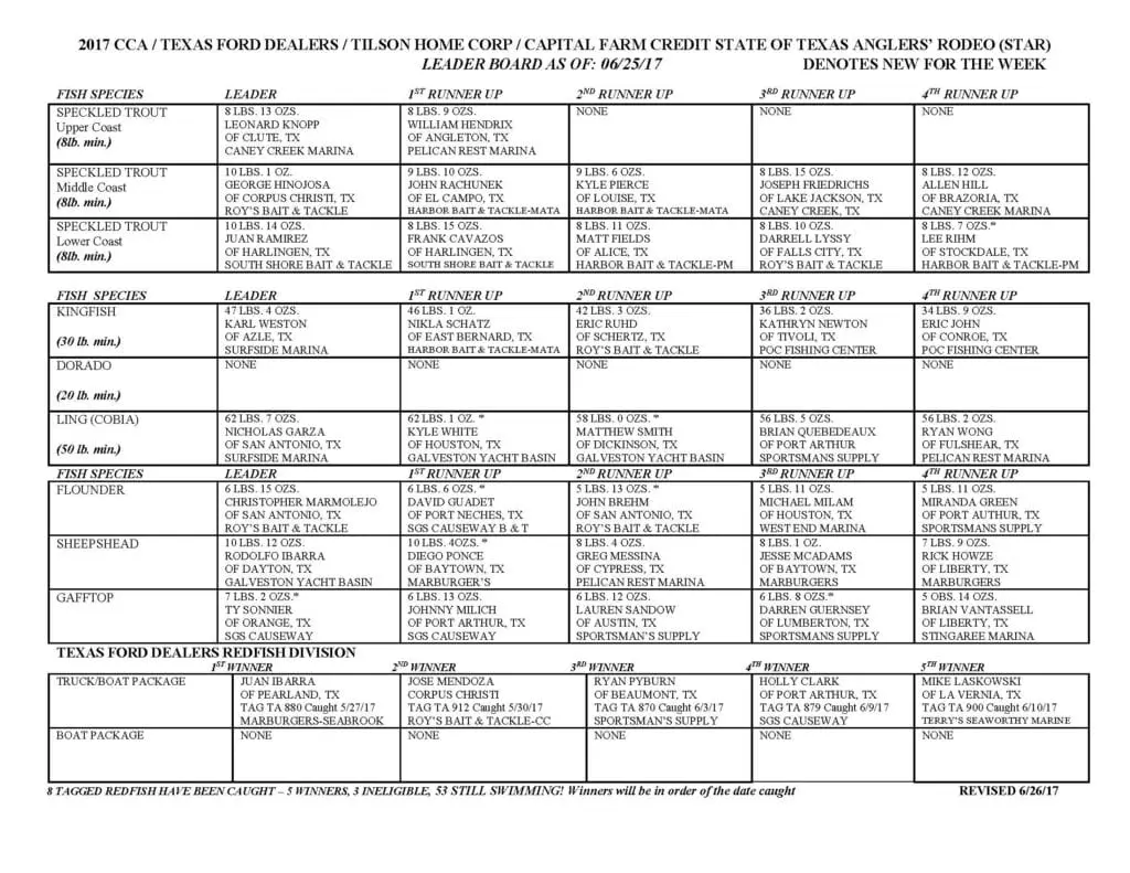 Home Texas FishingCCA STAR Leaderboard update