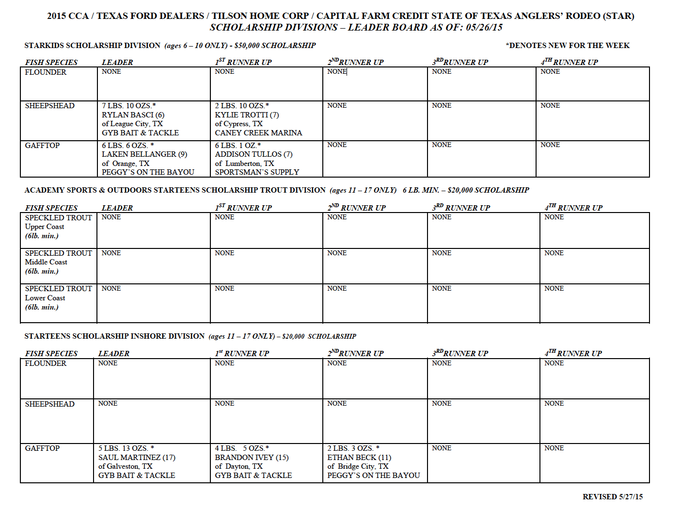 Eric- this was the 2014 leaderboard. As soon as we get a new one for the 2015 tournament, we’ll put it up.