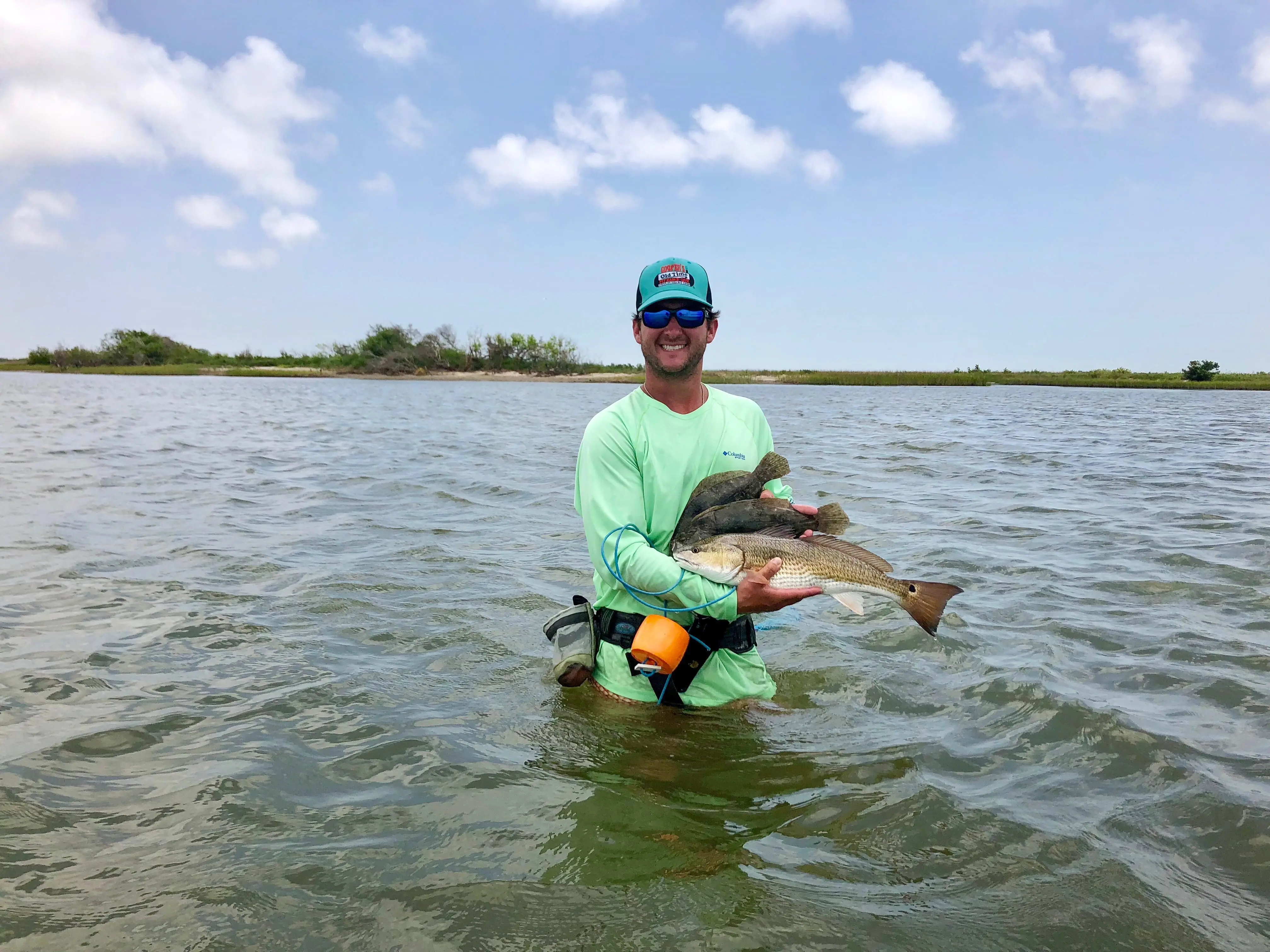 Capt. Nathan Beabout sent in this report from the Port O’Connor area. “Two days of sight casting with this crew was a lot of fun. Day one was slow and a lot of undersized reds. Had several good reds refuse to touch anything we threw at them. Day two we changed our location, and with some much better winds, was able to spend the morning casting to reds crawling down the bank. Nothing better than watching these fish crush a lure you made a perfect pitch on. Soft plastics and scented soft plastics rigged on a 1/4 oz jig got the job done.”
