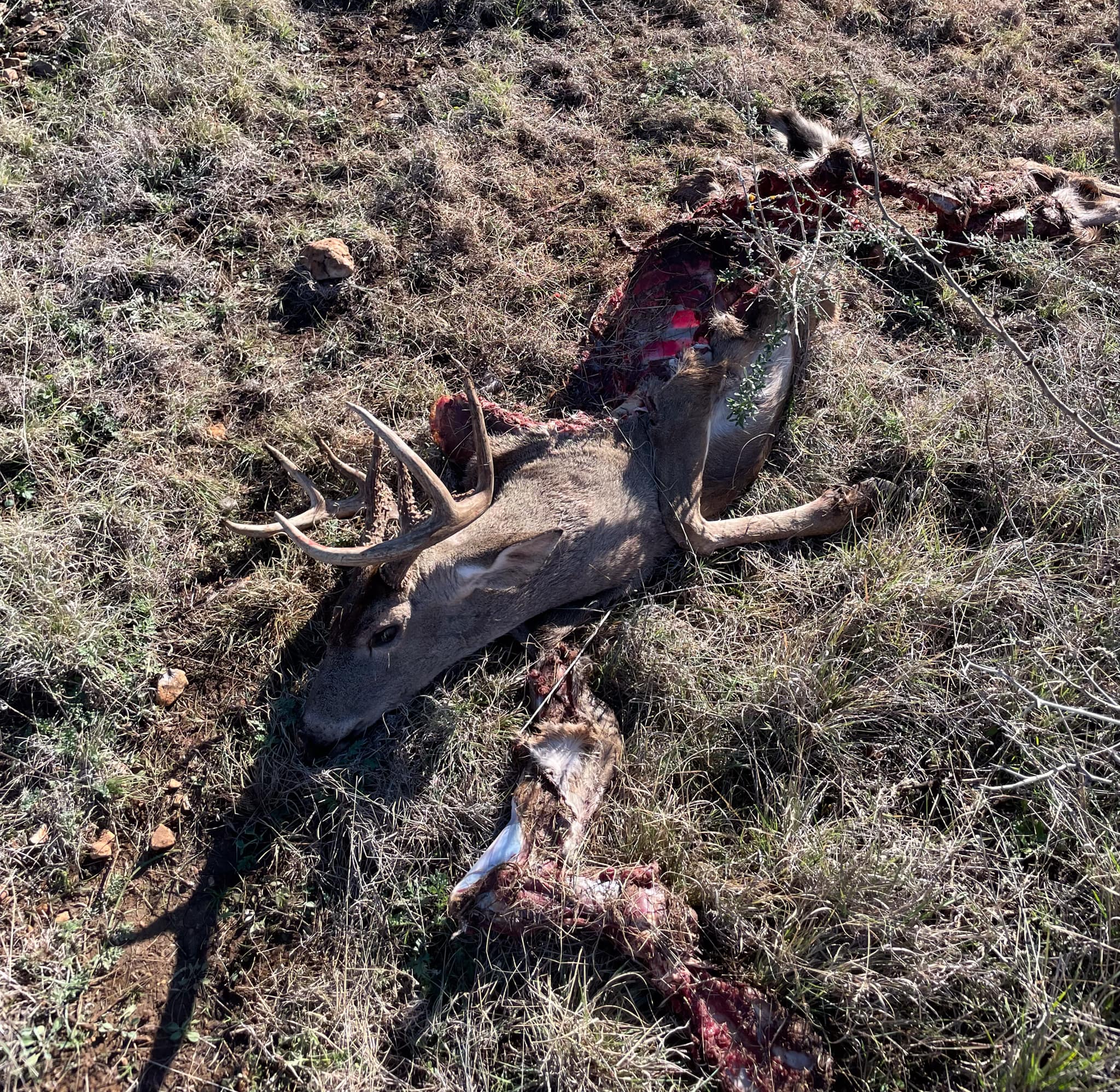 I shot the deer and immediately chased him, took him down, and were eating and dragging him around.”