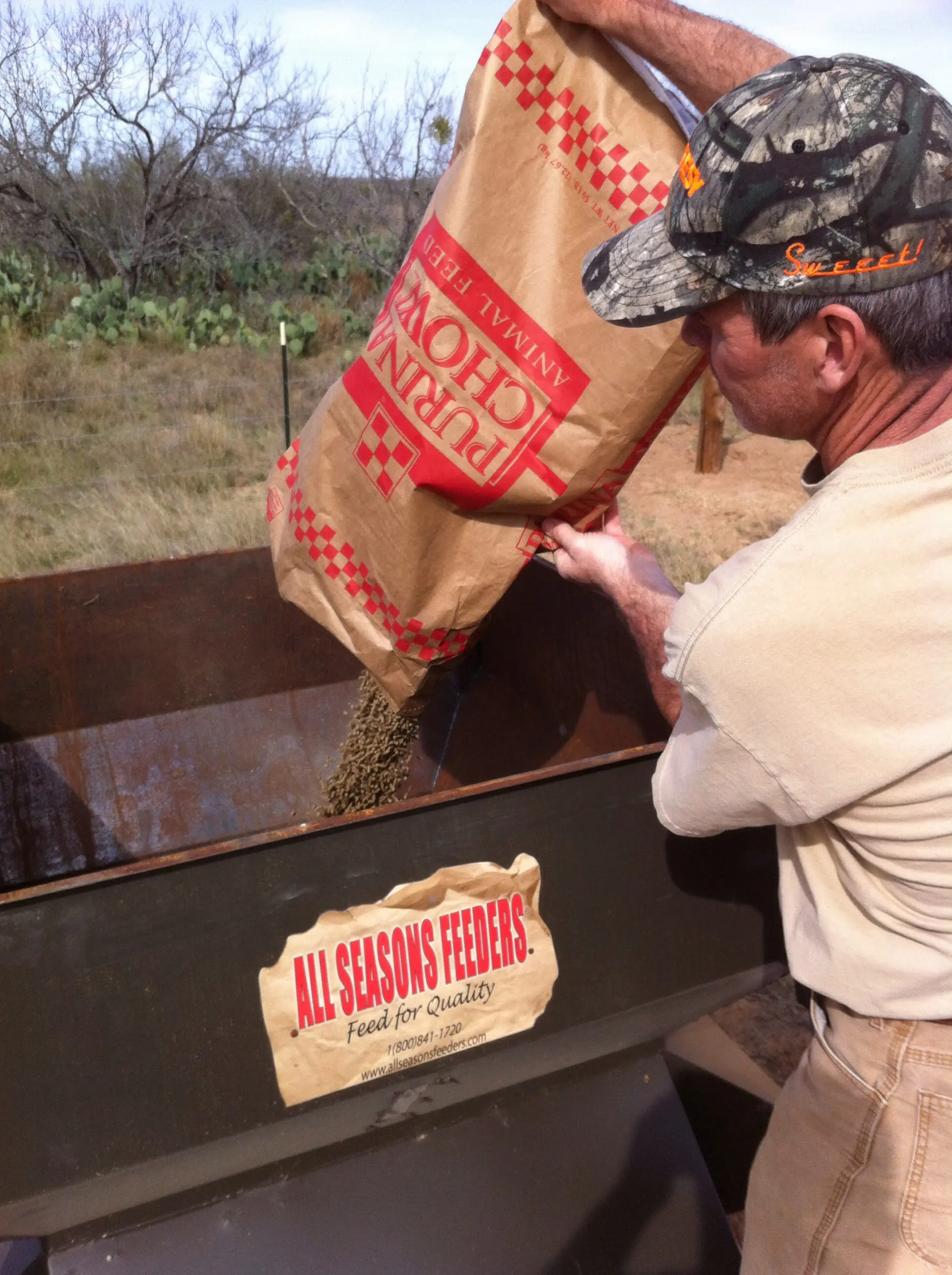 It’s pour it on “protein time” on Texas ranches, and many ranch hands are still doing it the hard way; filling feeders one bag at a time.