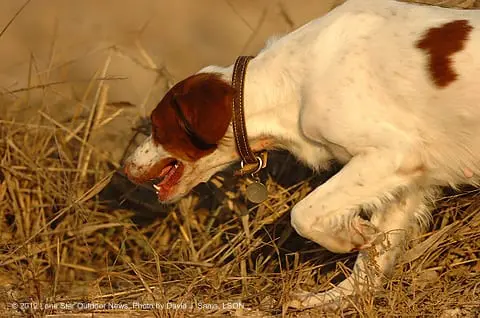 Next dog was a Brittany pup that was fed a marshmallow with strychnine embedded by a neighbor that witnessed the pup peeing in his garden … Just awful to see a innocent little dog die such a horrible death — the beating the neighbor incurred was nearly as horrible!!!! I learned from the Marine Corps improve your odds with more firepower — all I could put my hands on at the time my pup was dying in my garage was a 4-foot section of 2×4. All the odds I needed.