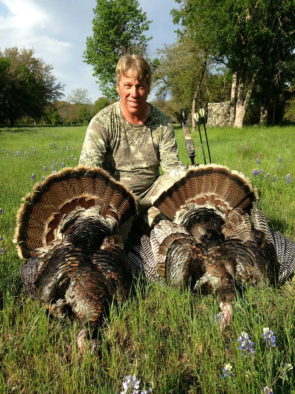“The first one took off and the second one jumped straight up in the air, then came right back down and went right back into full strut,” Franklin said. “I quickly nocked another arrow and took him, as well.”