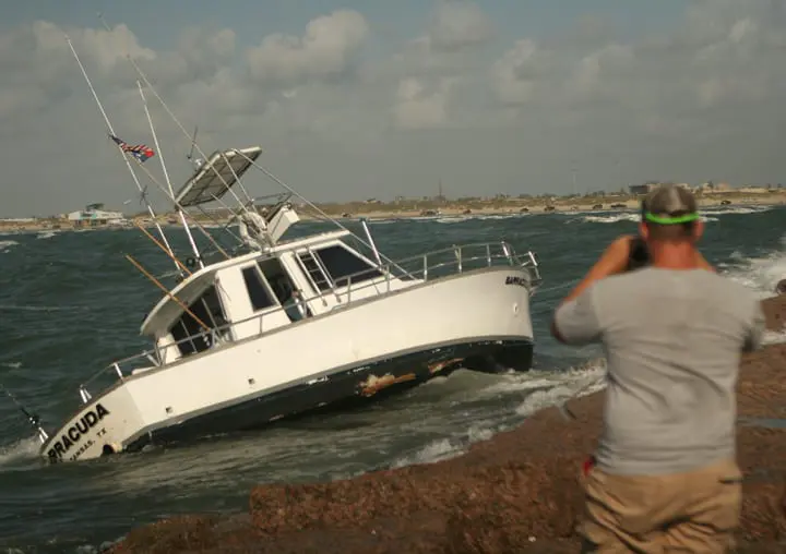 The captain of the grounded boat contacted Sector Corpus Christi watchstanders with a VHF radio at 4:55 a.m., stating that his 38-foot boat, the Barracuda, was aground on the Port Aransas south jetty with six people aboard.