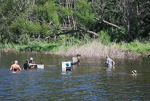 The vegetation is expected to spread outside the enclosures, which protect the young plants from being eaten by turtles, fish and beavers.