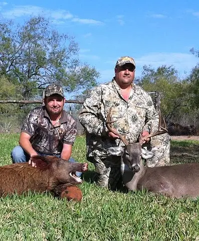 Today’s heroes are Justin Rowland, left, and Roel Vela. Both hunters took this hog and buck last season in San Manuel.