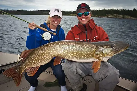 Today’s hero is Claire Starcher who, along with her guide, shows off the 47-inch northern pike she caught on a fly rod while fishing at Wollaston Lake Lodge in Canada.