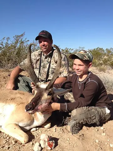 Today’s hero is George Austin. Here, George holds up his first antelope, taken on a hunt in West Texas.