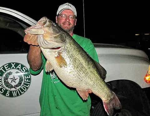 If the fish is pure Florida largemouth, it will be taken to the Texas Freshwater Fisheries Center in Athens and held for spawning; otherwise, it will be returned to the lake as quickly as possible.