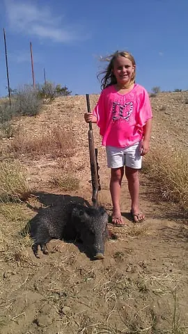 Today’s hero is Adkins hunter Callie Cox, 7. Callie harvested this javelina last November in Webb County wearing her favorite pink hunting shirt.