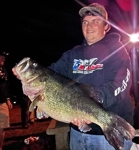 Pack caught the fish in 10 feet of water using a Carolina rig while fishing in hydrilla. The bass weighed 13.29 pounds and was 26.75 inches long and 20 inches in girth. It will be held at the A.E. Wood State Fish Hatchery in San Marcos until the results of DNA testing are known. If the fish is pure Florida largemouth bass, it will be moved to the Texas Freshwater Fisheries Center in Athens for spawning.
