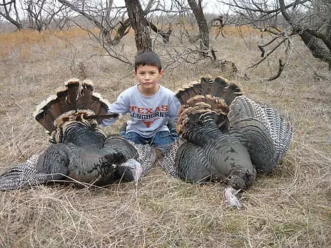 Today’s hero is young Eli Elizaldi, 7, who harvested these two jakes on Dec. 8 while hunting in Montague County with is Pawpaw, Charles Henry.