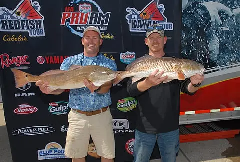 Justin Henne, of Round Rock and Scott Belcher, of Corpus Christi weighed in a two-redfish limit that totaled 17.33 pounds to win the second event of the season for the IFA Redfish Tour presented by Cabela’s at Port Aransas on April 13.