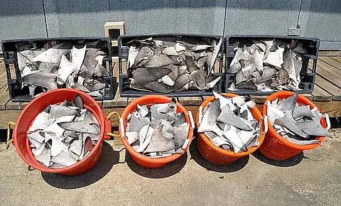 Agents found 11 whole sharks located on the deck and a hidden compartment in the bow of the vessel that contained 12 large sacks of shark fins totaling 2,073 fins. The bodies of the fins found in the sacks were not found on the vessel.