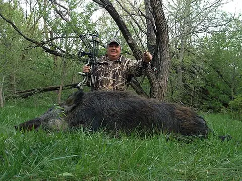 Today’s hero is Scott Hahn of Plano with a hog he shot with a bow on a ranch near Blooming Grove on March 28.