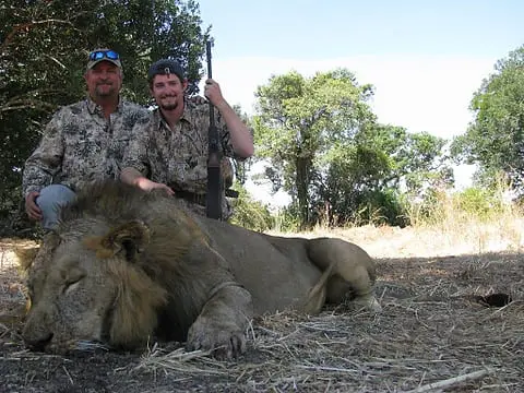 Today’s hero is Gunner McDonnold with his father, Craig, and an old western Tanzania lion.