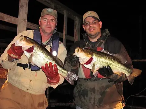 Recent fisheries surveys have revealed good abundance of largemouth bass, sunfishes and catfishes. The best five largemouth bass caught during a recent electrofishing survey weighed 39 pounds (an average of 7.8 pounds per fish). Temperate basses, such as white bass, also offer excellent seasonal fishing opportunities.