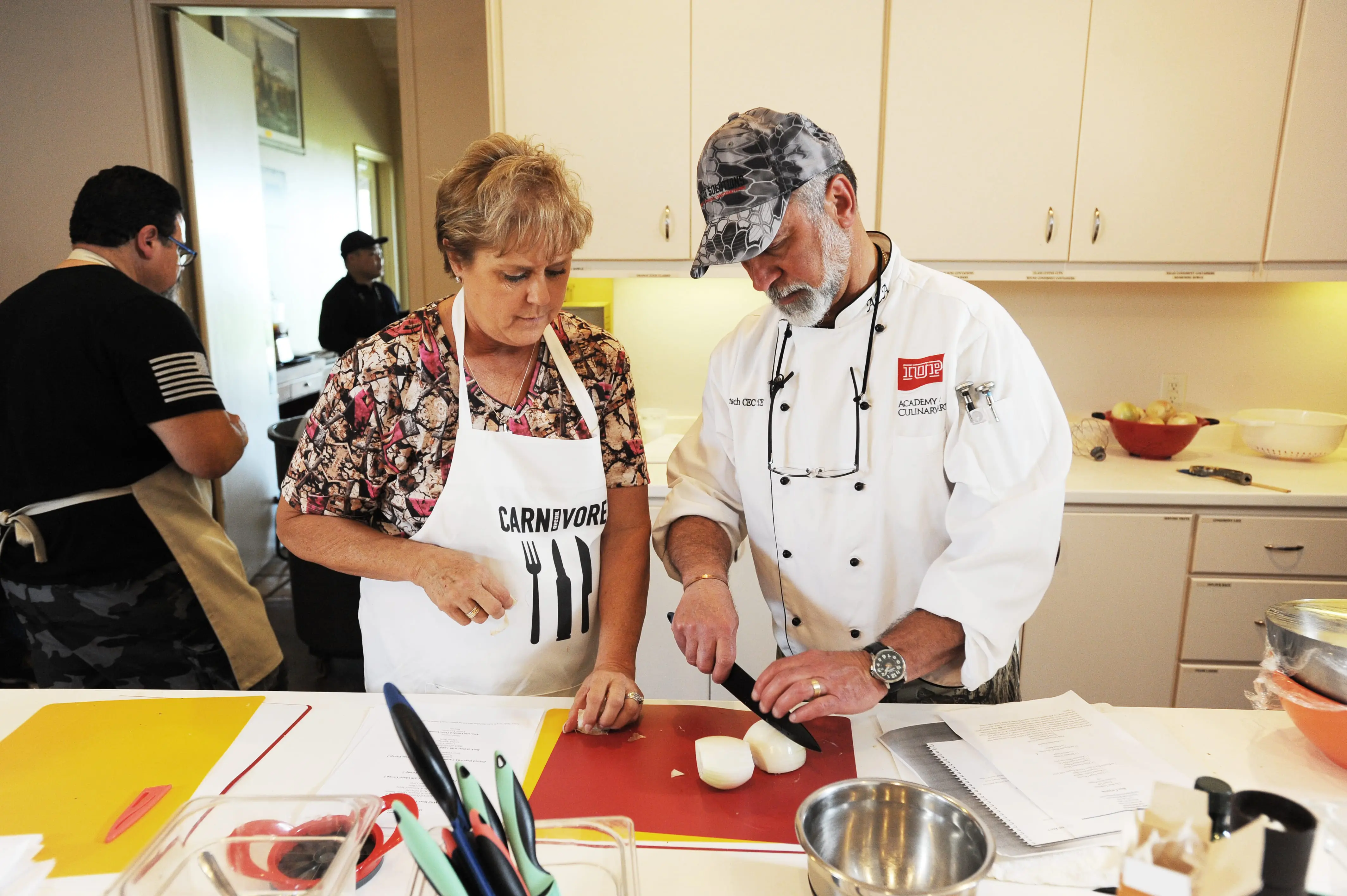 The students experience in the kitchen varied. Before the instruction began, Andy Coonrod, of Houston said the only thing he knew how to cook was macaroni and cheese.