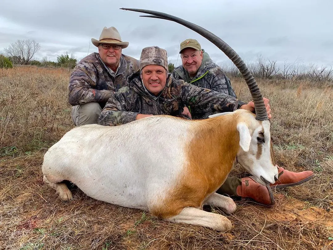 Home InstagramHappy hunters today. First scimitar horned oryx taken. Nothing easy about hunting these antelope.