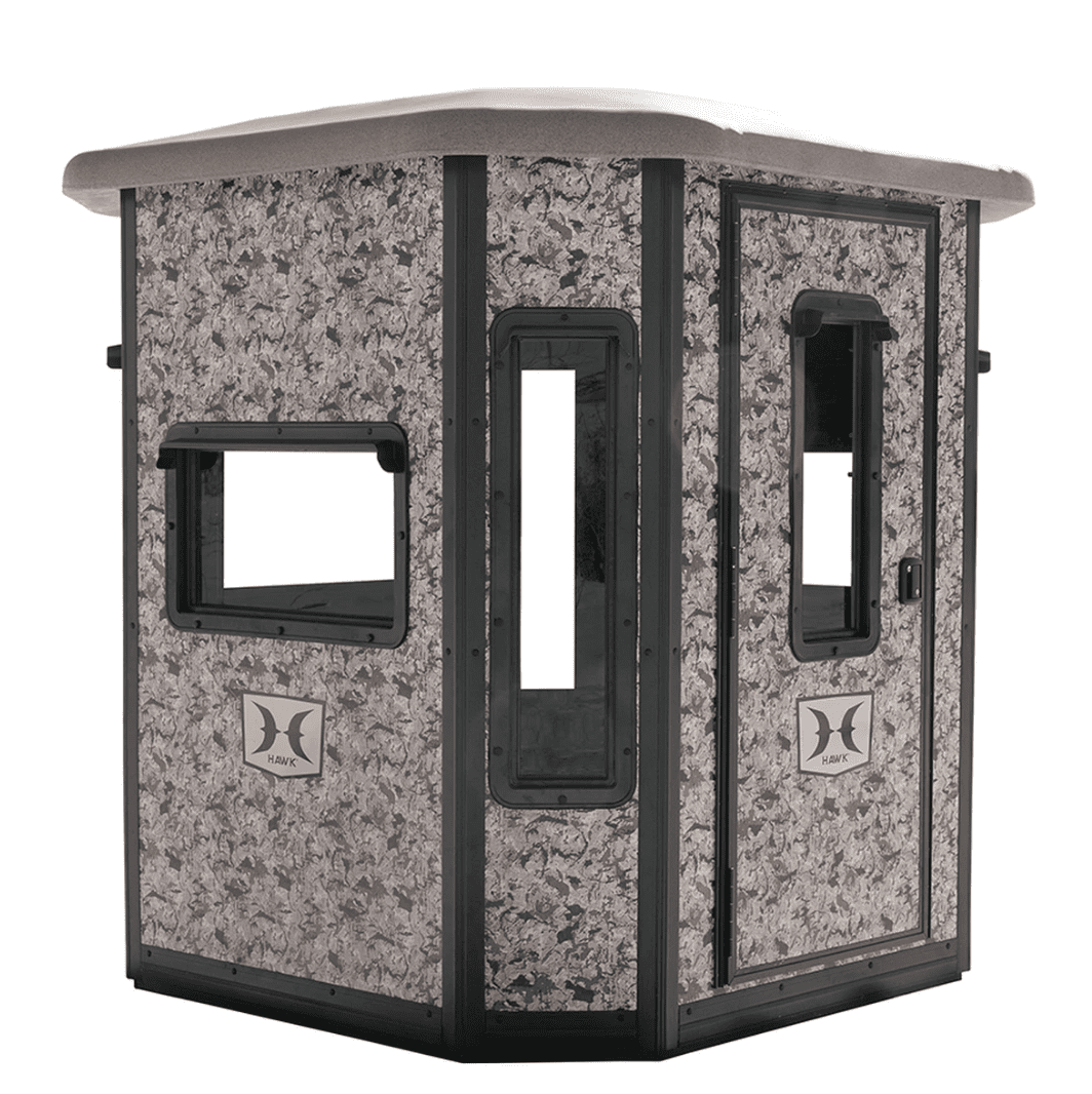 The brand new Hawk ‘Office’ box blind provides comfort and reliability to hunters as a superior box blind. With insulated interior and exterior steel surfaces as well as an insulated powder coated steel floor, the ‘Office’ is a next-level box blind that is built to last. This unit gives stealth a new meaning with insulated steel walls and a steel foam insulated floor topped with a 1’’ high-density rubber mat. The ‘Office’ measures 6’ x 6.5 tall and ships fully assembled so that it is field ready. With the addition of the ‘Office’ unit, Hawk continues to help hunters succeed!