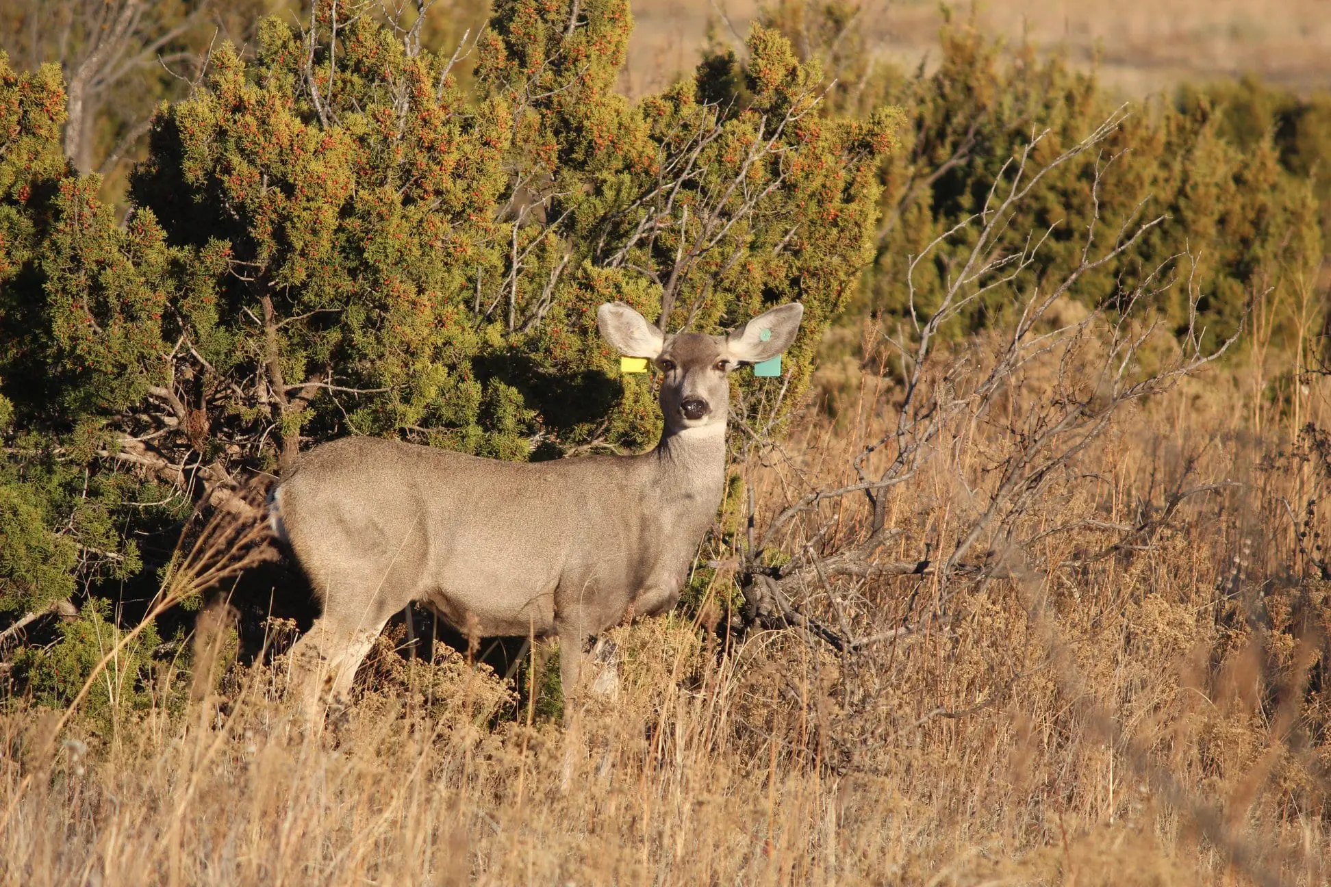 This mule deer doe was captured in Motley County west of Matador in December 2008 as part of a Texas Parks and Wildlife Department research project looking at estimating mule deer numbers using a helicopter survey method. At the time of capture, biologists aged her at 5.5 years old.
