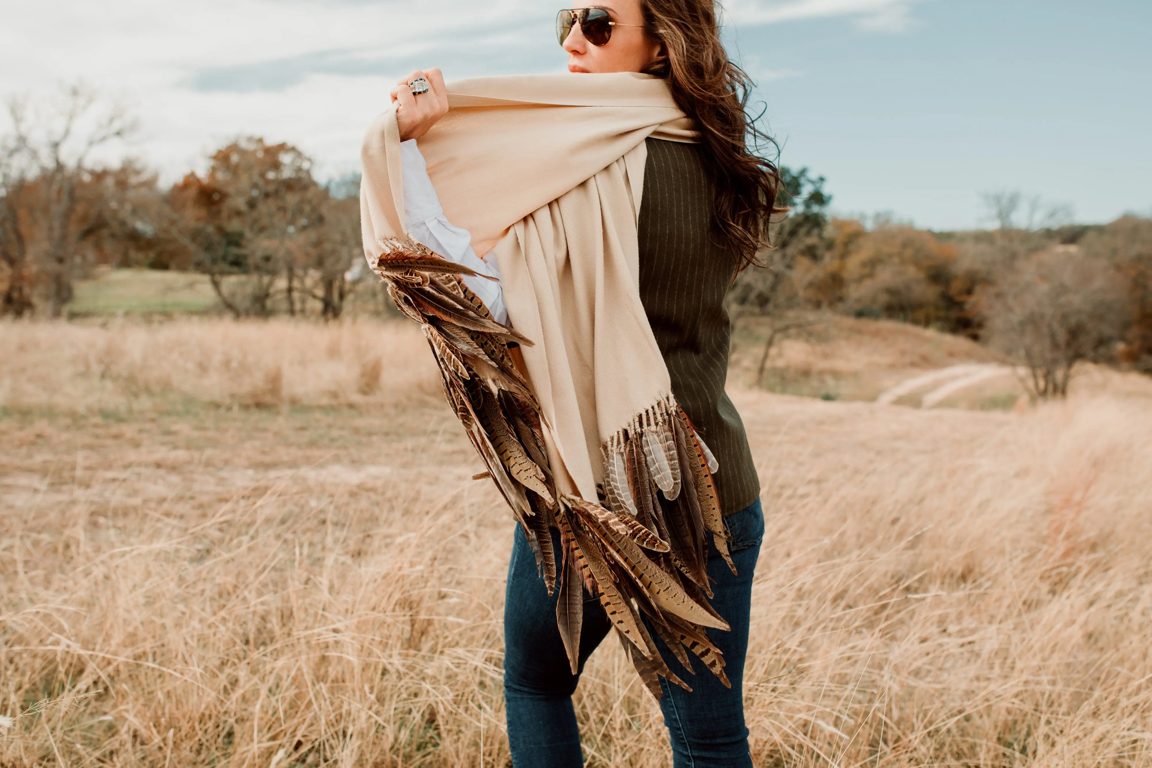 After shawls that Longoria created for herself using pheasant feathers and cashmere were admired by others, she decided to open a shawl line called Hawkhurst South in late 2018.