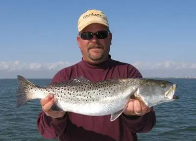 “We’re doing better on the trout, fishing pretty much the whole system — East Bay and the Trinity,” he said. “We’re catching good trout and a mixture of reds every now and then. When that wind picks up, it kind of jacks with us.”