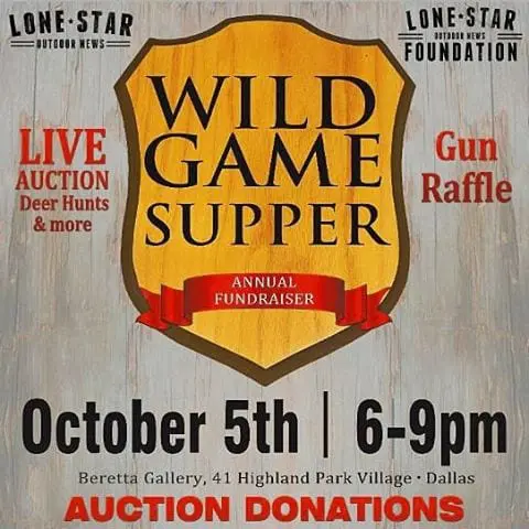 Join us for our Foundation annual fund raiser. Wild game,beer and wine and a super good time. Meet Olympic medalist Kim Rhode at the Beretta Gallery Oct 5. 6-9 pm