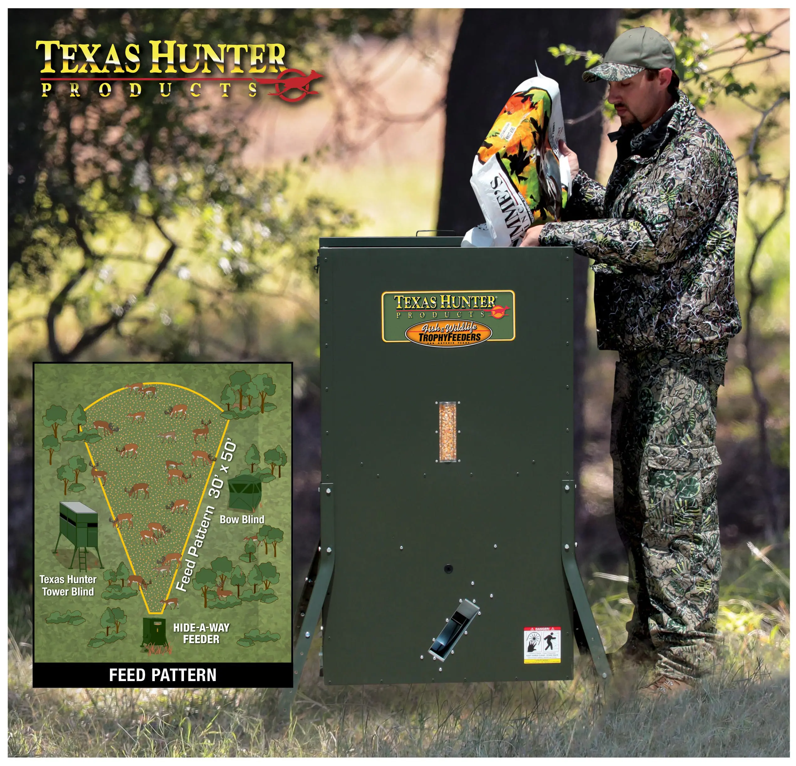 The built-in-America feeders come with a premium timer and a 5-year limited warranty. Learn more about the all-new feeders here or call Texas Hunter Products at (800) 969-3337.