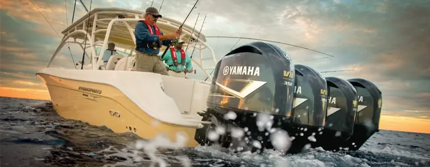 *PROGRAM TERMS AND CONDITIONS: Consumer benefit for purchasing a new (unused, not previously warranty registered) Yamaha four-stroke outboard is based on horsepower as follows: (i) 2.5-300 hp is a choice of either a 24-month Yamaha Extended Service contract (choice offered in Florida is a 24-month Yamaha Limited Warranty), or a credit based on MSRP toward the purchase of goods and/or services at the authorized participating dealer that sold the outboard, at no extra cost to consumer (“Promotion Credit”); or (ii) 350 hp is a choice of either a 12-month Yamaha Extended Service contract (choice offered in Florida is a 12-month Yamaha Limited Warranty), or Promotion Credit. NO BENEFIT SUBSTITUTIONS. To be eligible, outboards must also have been manufactured since January 2013. Promotion is only applicable from authorized participating Yamaha Outboard dealers in the USA, sold to purchasing consumers residing in the USA. Promotion is limited to available stock in dealer inventory that is sold, PDI completed, delivered and warranty registered on YMBS by the dealer in accordance with Yamaha’s Promotion and warranty registration requirements during applicable dates. No model substitutions, benefit substitutions, extensions or rain checks will be allowed. Outboards sold or provided for commercial, camp, resort, rental, promotional/demo, government agency, competition, tournament or sponsorship use are not eligible. This Promotion cannot be used in conjunction with any other Yamaha offer. Some exceptions may apply. See authorized participating Yamaha outboard dealer for complete details. Yamaha reserves the right to change or cancel this Promotion at any time. Other restrictions and conditions may apply.