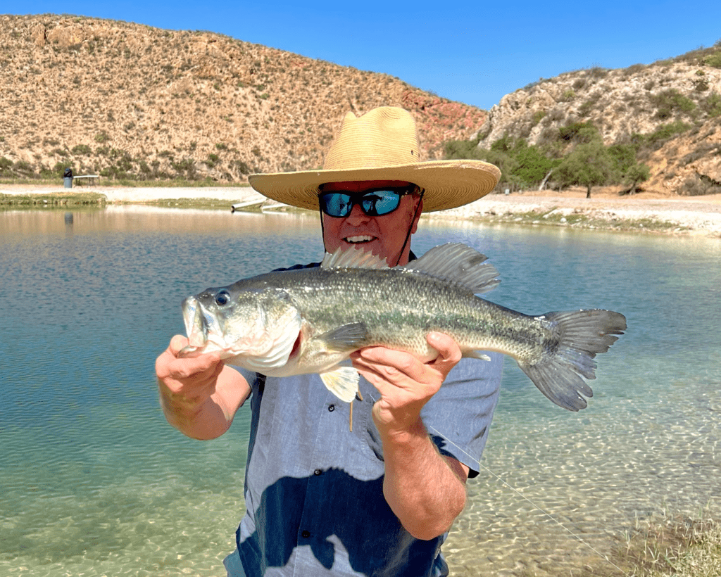 It was hot, but the largemouth were still spawning and, with the crystal-clear water, you could see all the action. I caught four small bass and one good one on one-half of a senko, and my wife caught one on a fly rod that was attacked by a larger bass that I ended up catching later. While fighting that big bass, I watched a 30-inch rainbow trout cruise by, an exciting moment highlighting the few hours of fishing.