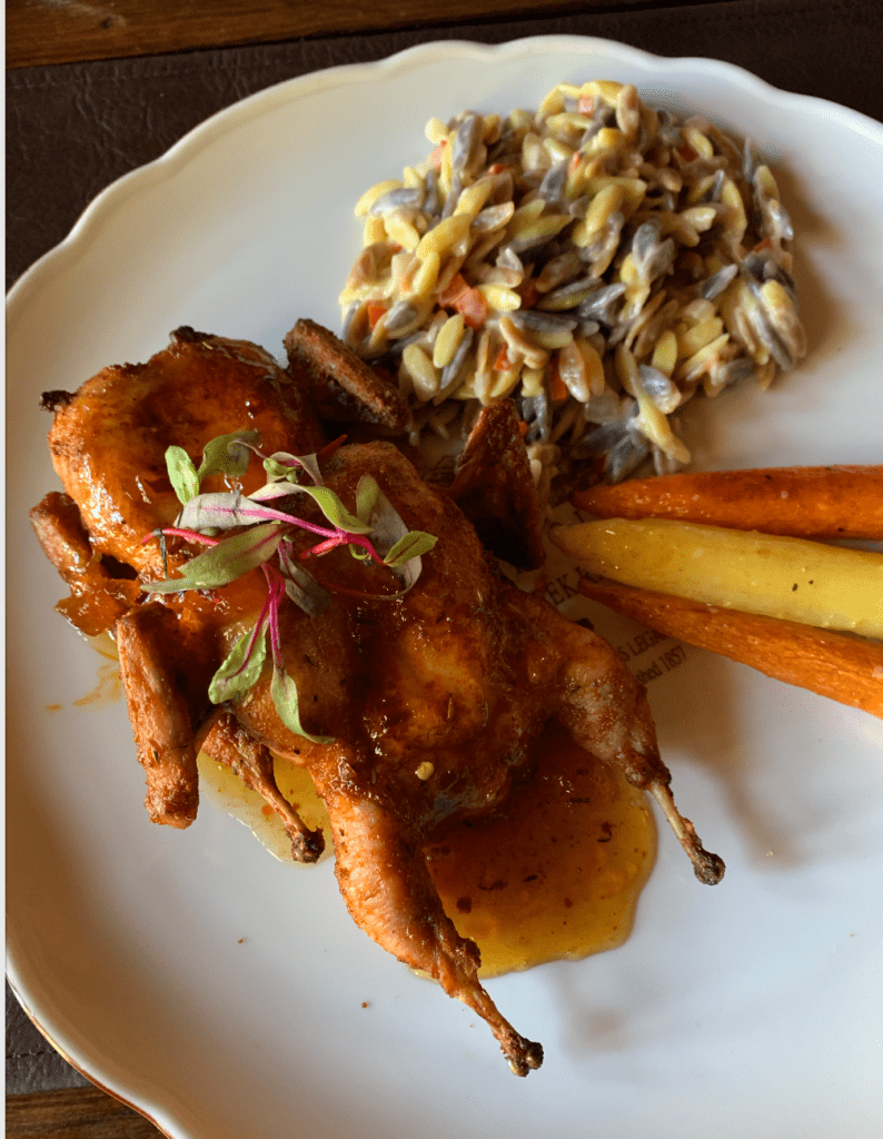The dining room and bar has a beautiful view of the lake, and meals are served family style. The chef decides the menu each day, and we were treated to roasted quail with habanero jam for dinner and beef enchiladas for lunch.
