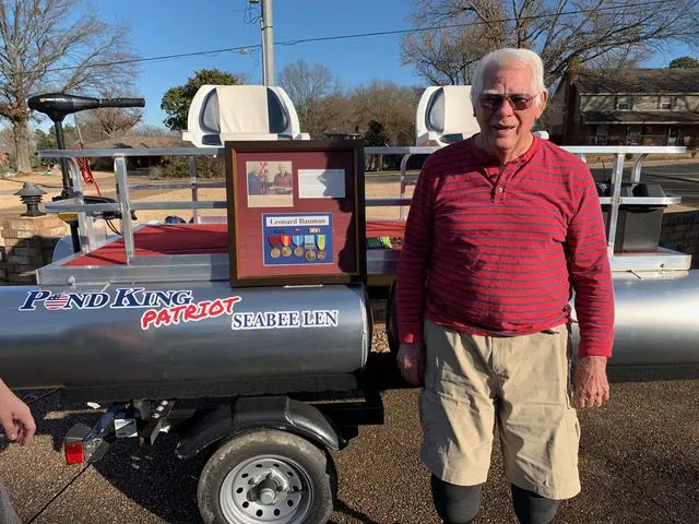 Inspired by an order placed as a gift for a WWII Navy Veteran, Pond King launched Pontoons for Patriots in 2019. Since then, Pond King has continued with this annual random drawing in which anyone can nominate an active-duty serviceman or woman or veteran of the U.S. Military to win a Patriot two-man fishing pontoon boat, plus an Intestate Battery and fishing gear from several of our partners.