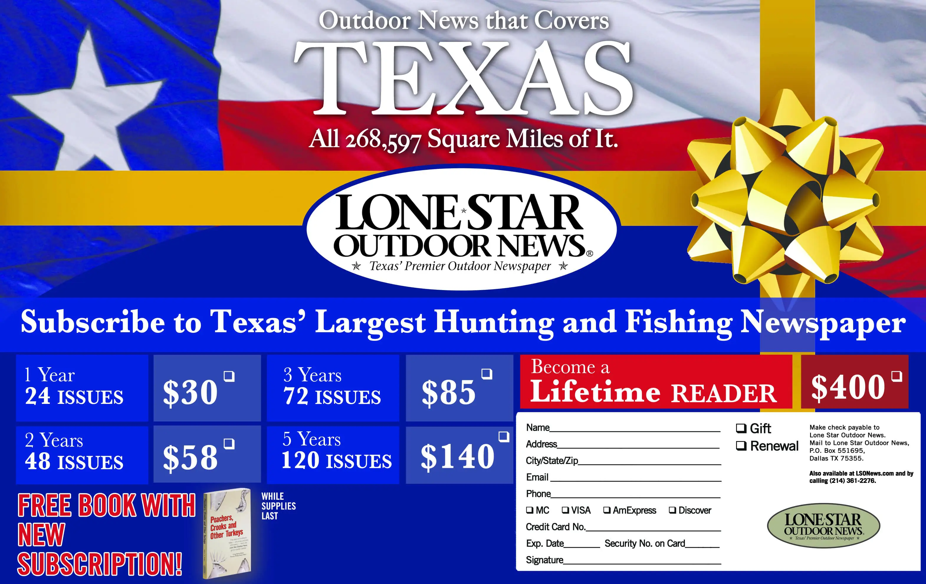For only $30, 24 issues of LSON will be delivered to your home, business or hunting camp. Give that hunter or angler the latest in hunting and fishing news from across the state of Texas.