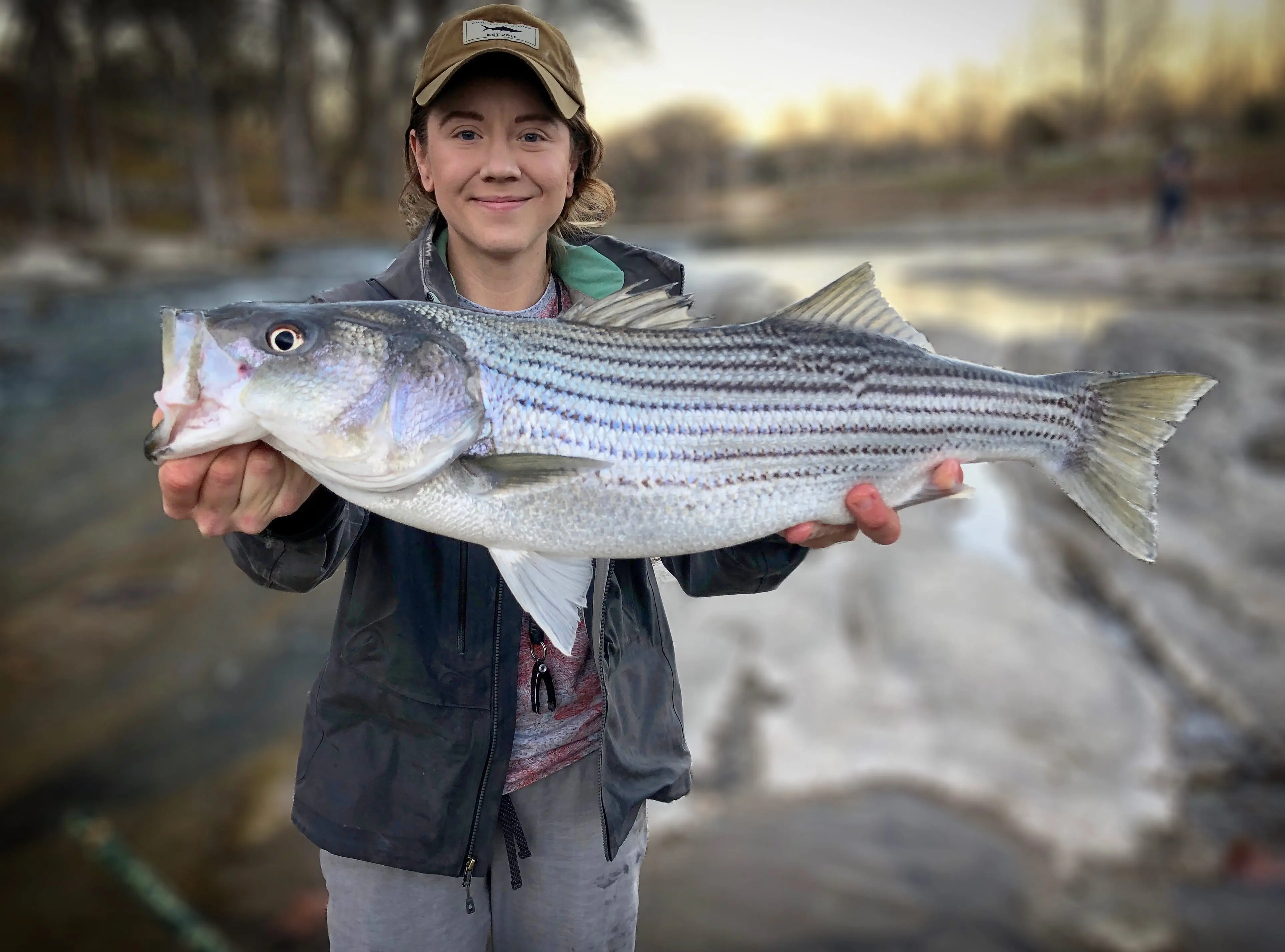 Shank recently had a customer land a 28-inch, 13-pound striper on the Guadalupe during a day of trout fishing.