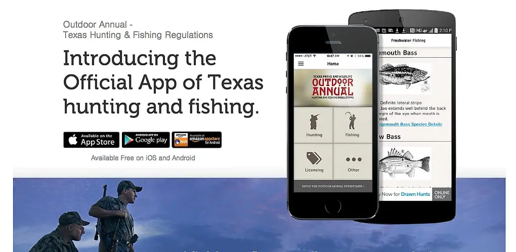 To download the new app, visit www.txoutdoorannual.com/app or search the iTunes App Store, Amazon AppStore or Google Play for Outdoor Annual – Texas Hunting and Fishing Regulations.