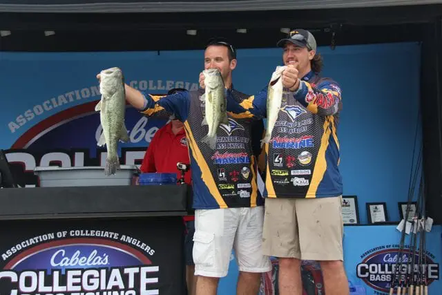 Though it is a rare occurrence in bass fishing weigh ins, ties do happen, which is exactly what happened between Murray State University’s team of Ryan Kirkpatrick and Logan Thomas and Tarleton State University with 12.80 pounds.