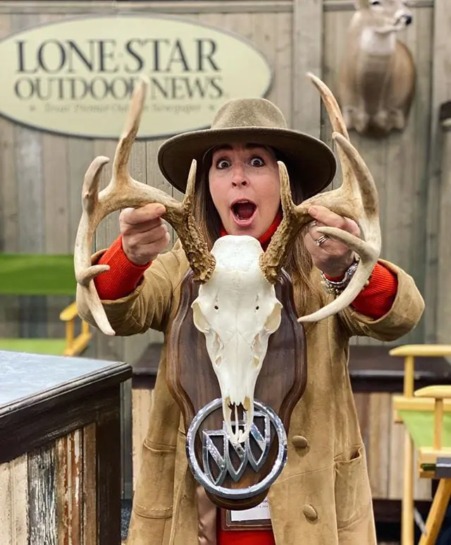 We are calling this guy the “Buick Buck.” He ran across the road on the way to the ranch for Thanksgiving last year. Adrienne’s first buck ever will be one she will never forget. Had to mount him with the sign of the totaled car. #lonestaroutdoornews #dscshow2020 #dsc