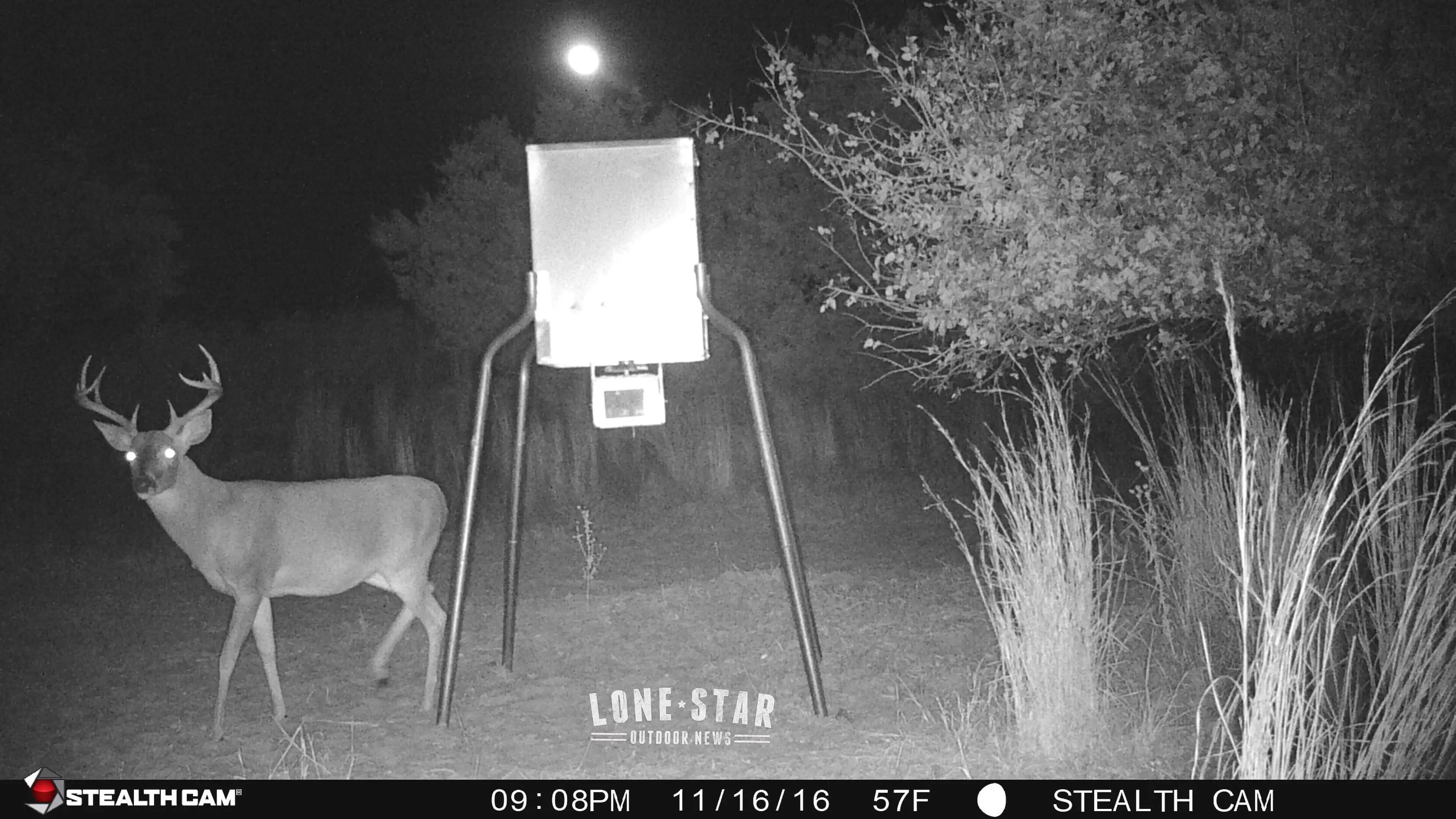 Meanwhile, David J. Sams headed to his deer lease where he got some cool game camera photos of a big buck under the super moon. Sams was lucky enough to photograph one of the largest bucks on the lease Friday afternoon. His friends were urging him to shoot the 4-year-old buck, but instead, he opted to use his Nikon. Give him a few more years and the hunt will be on for real. Some rutting activity was evident Saturday morning as a young 10-pointer had his nose pressed to the fence because a doe was on the other side.