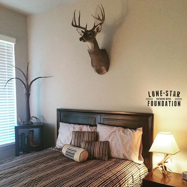 When your foundation hunters send you photos like this it makes you smile. Tyler Liang proudly hung his first deer over his bed. #hunting #deer #whitetail #lonestaroutdoornewsfoundation #lonestaroutdoornews